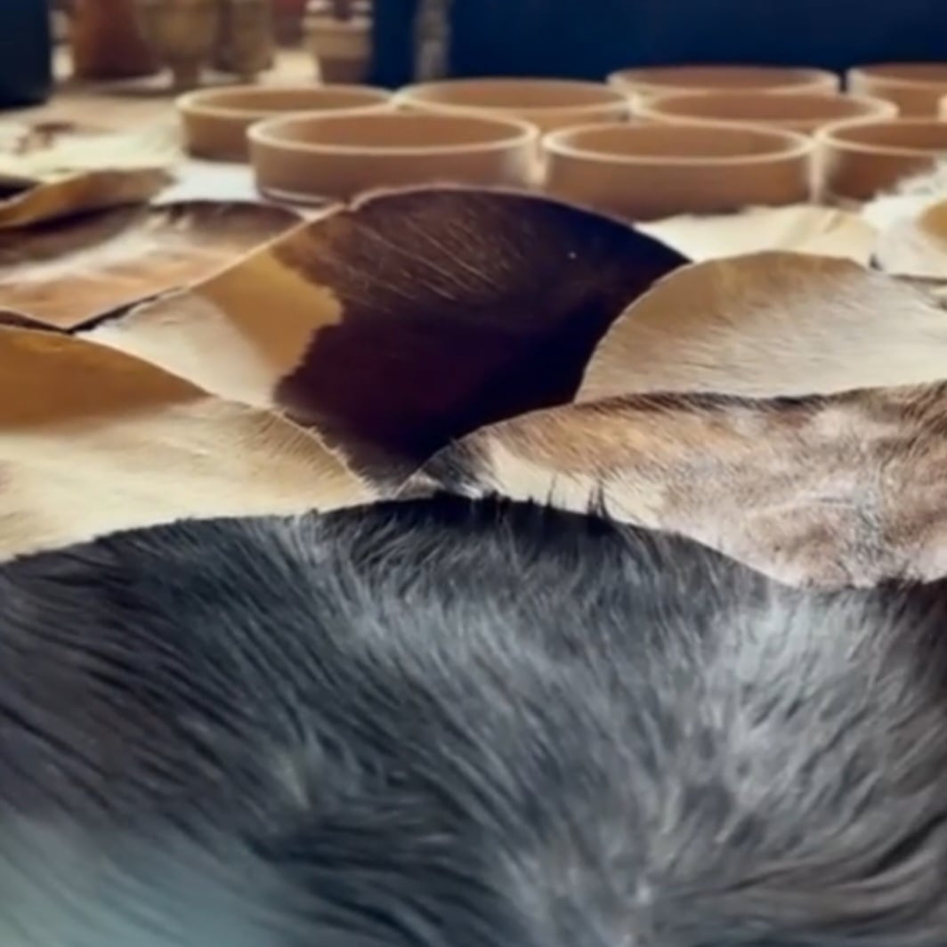 We use ethically sourced skins—goat, cow, buffalo, and camel—each providing a unique resonance. Our hoops are made from durable woods like ash, rosewood, willow, red oak, and mulberry, enhancing both strength and sound quality.